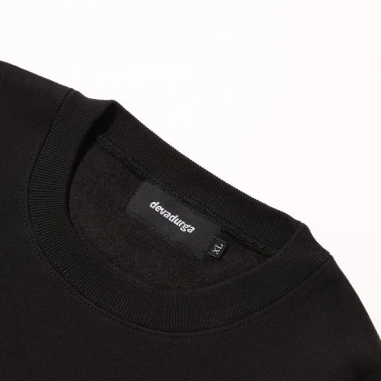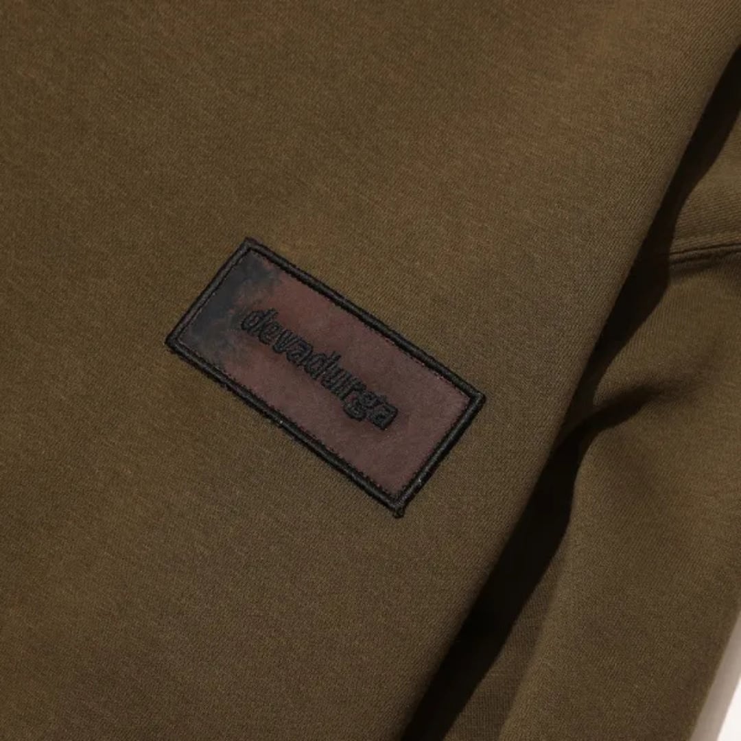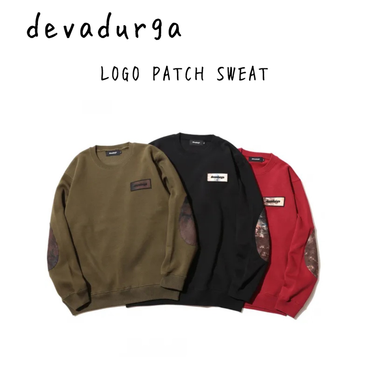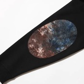 泥染肘あてをパッチワークした裏起毛スウェット。