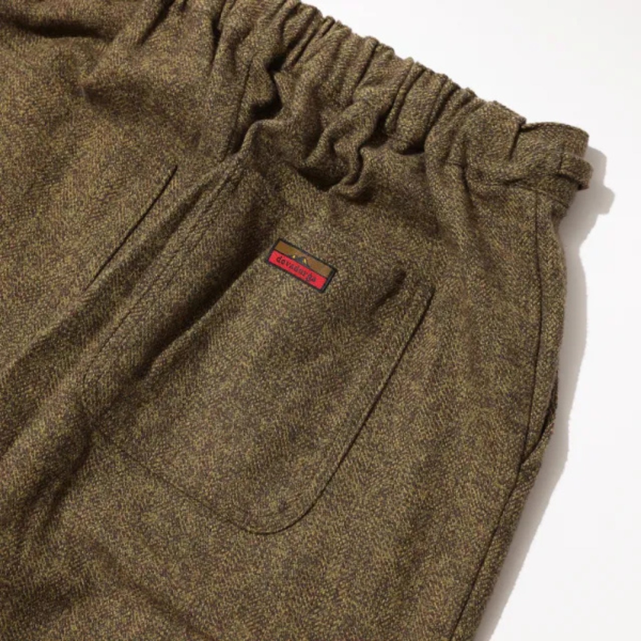 3色の糸から1本の糸を撚った【三つ杢】糸を使用したコットンツイードサムエパンツ。