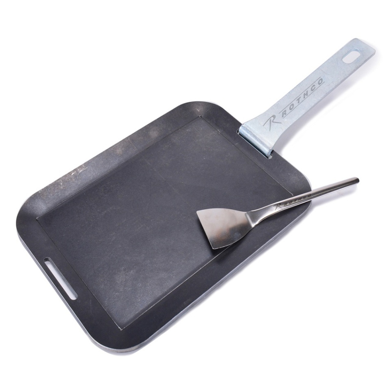 蓄熱性が高くかつ重すぎない、4.5mm圧の黒皮鉄板です。IH、ガス、焚き火に対応しています。