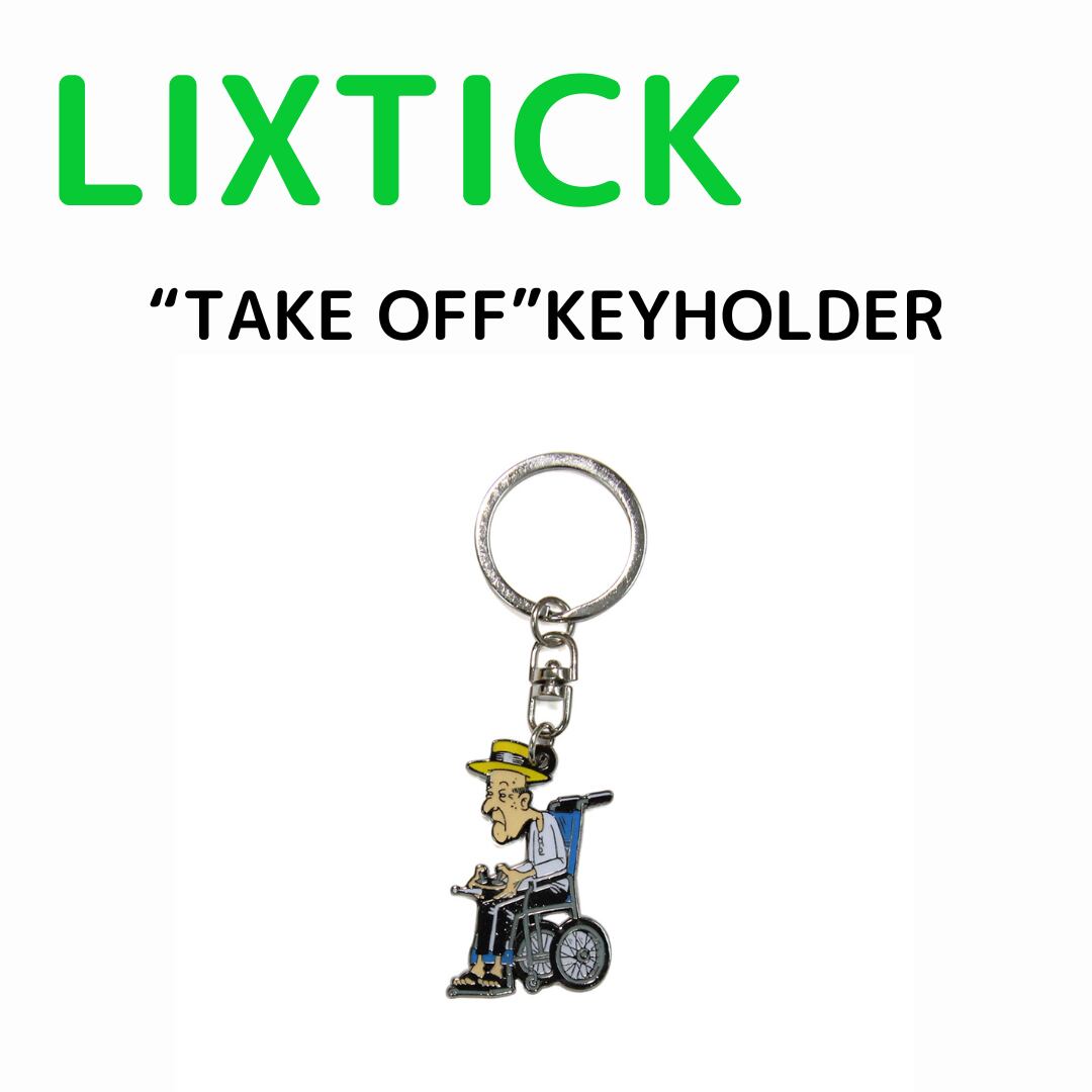 “TAKE OFF”は、ドローンを操縦しながら犬を散歩する爺…実はドローンが散歩さしている?!のか、そんな爺を切り取ったキーホルダー。