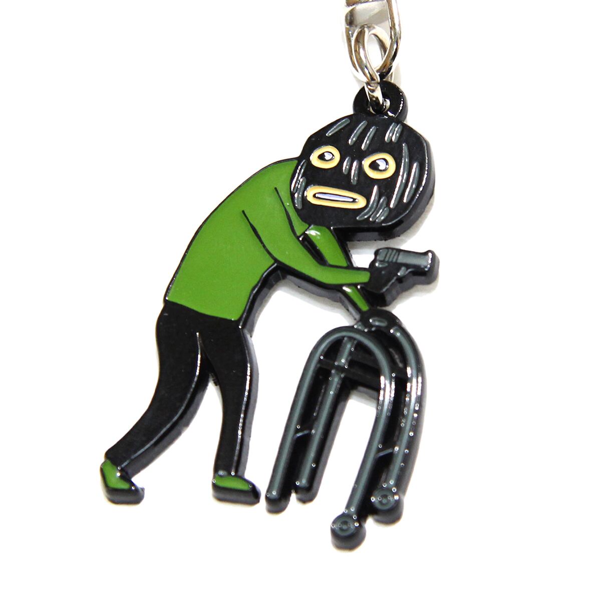 “愛くるしい!?”年老いた銀行強盗がテーマとなるエコバック。《老後に2000万円》…そんな時事を基に書き起こされた『Fill up the Bag!』= (この袋に金を詰めろ)のワードとお茶目な吹き出し文字からなる”ポップでハード”なデザインから飛び出した”OLD ROBBERY”キーホルダー。